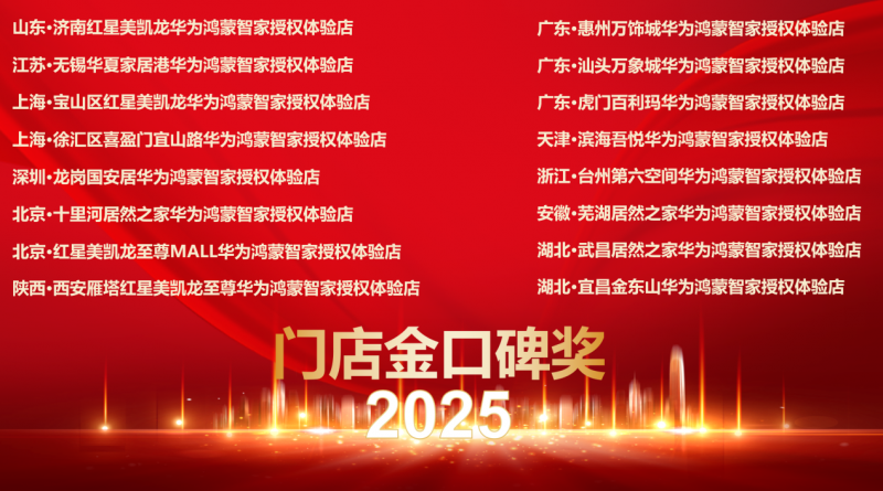 “想用户所想,解用户所需”的长期主义服务精神,不是华为鸿蒙智家服务团队的优秀个案,而是广泛共识。为树立并推广服务品质的行业标杆,华为鸿蒙智家还设立了年度“金口碑”优秀服务门店奖项,基于项目交付量、用户净推荐值(NPS)、投诉率及交付能力等对门店进行评审。在2025年度评选中,全国共有16家华为鸿蒙智家授权体验店门店凭借卓越表现获奖。